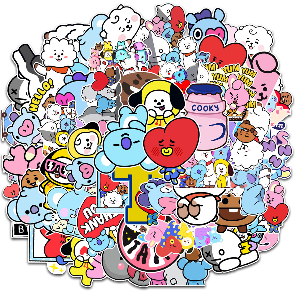 20/40 pcs BT21 Stickers KPOP BTS Music Stickers for Laptops, Skateboards, Girls and Boys