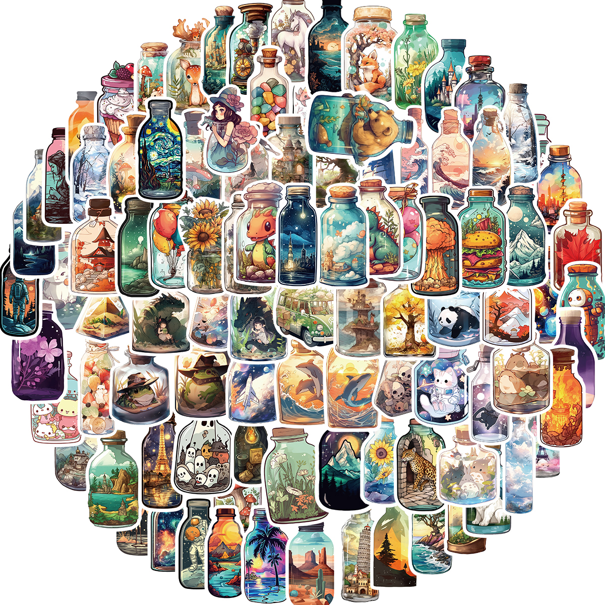 20/40 pcs Bottle World Stickers Miniature Terrarium Stickers for Laptops, Skateboards, Girls and Boys
