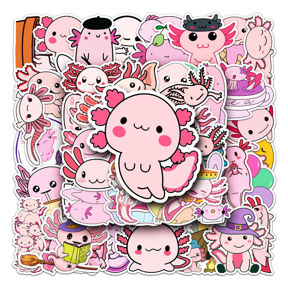 20/40 pcs Axolotl Stickers Pink Salamander Amphibians Stickers for Laptops, Skateboards, Girls and Boys
