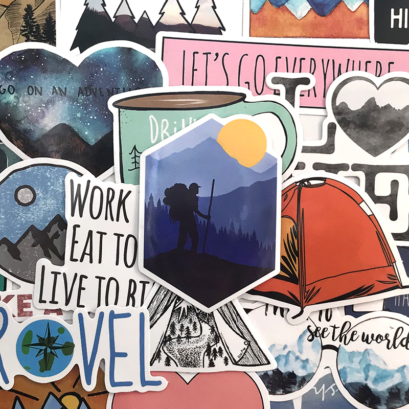 20/40 pcs Camping Stickers Travelling Outdoor Hiking Stickers for Laptops, Skateboards, Girls and Boys