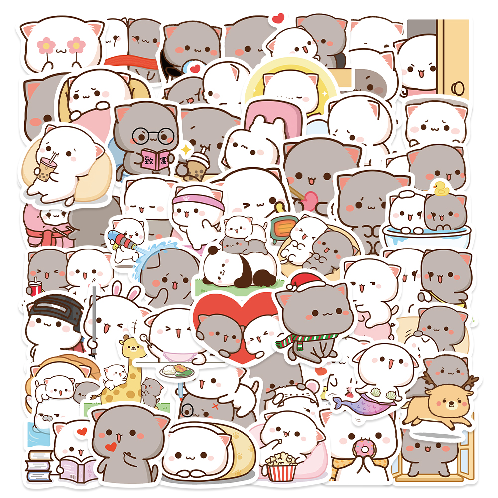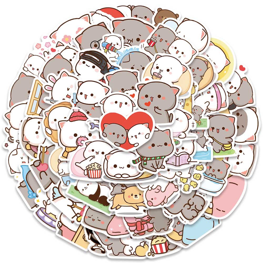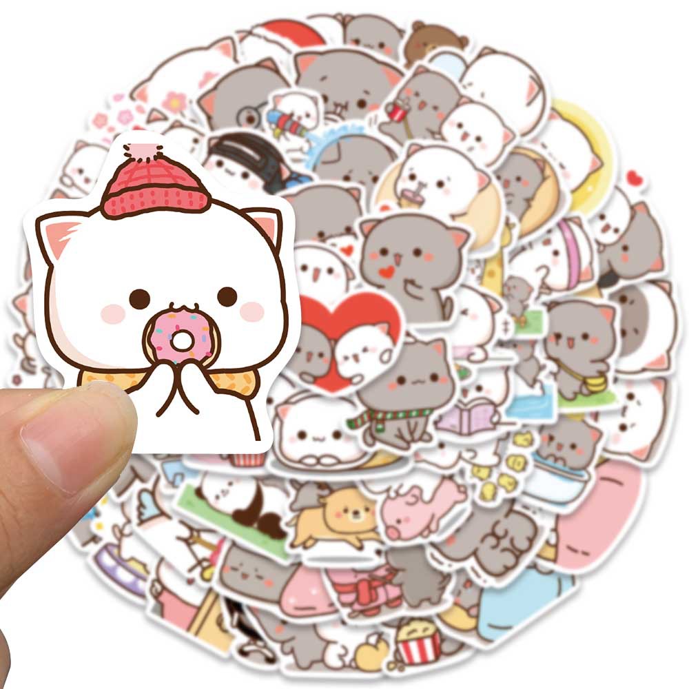 20/40 pcs Peach and Goma Stickers Lovely Cute Cat Couple Stickers for Laptops, Skateboards, Girls and Boys